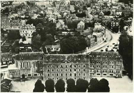There is a comprehensive photograph of the back of the three-building complex on page l50 of Richard S. Kennedy’s standard biography Dreams in the Mirror; Kennedy indicates the building and the floor of the Enormous Room. This is a far better picture than one can shoot from the ground. Taken from the air, it shows the buildings as well as some of La Ferté-Macé. The spatial relationship of the town and these buildings is made clear. Kennedy describes La Ferté as "a grim, grey, stone three-building complex, formerly a seminary (closed in 1906), comprising two three-story structures and a large chapel, surrounded by a seven-foot stone wall" (149). However, "three-story" would be the French designation; Americans would opt for "four-story." C indicates that the stone wall was ten feet high at least in places and topped with three feet of barbed wire (92, 157). Also, the building Kennedy terms "a large chapel" [end page 97] should, I believe, be designated as a "Church." Situated at one end of the three-building complex, it is as immense as The Enormous Room building at the other end; it is much too large to be called a "chapel." C calls "a chapel" (42) the "exceedingly small room" where Mass is said for the inmates (126). His description, as we will note, indicates that this room is too small to be the end building of the three-building complex. I will call this building, then, the "Church."