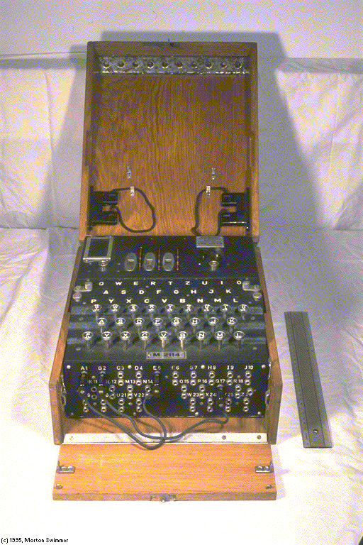 The Enigma Machine. Picture by Morton Swimmer. More pictures can be found at this site. |