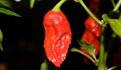The ghost pepper, a.k.a. bhut jolokia, is the one of the spiciest (hottest) peppers in the world. It is reported to be about 400 times spicier than Tabasco sauce.