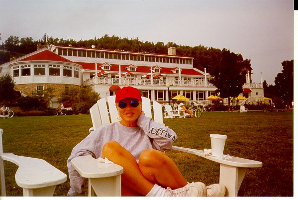 Here's a shot of The Sandstress relaxing in front of our summer cottage...