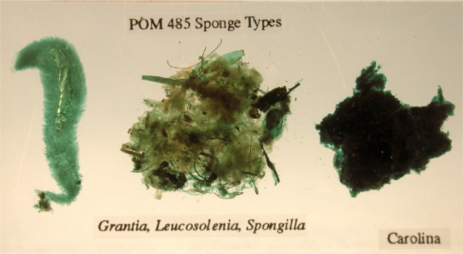 Three sponge types from left to right: syconoid, asconoid, and leuconoid.