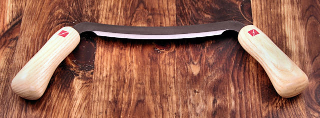 using a drawknife, a large chisel and gouge (see below). I finished by rough