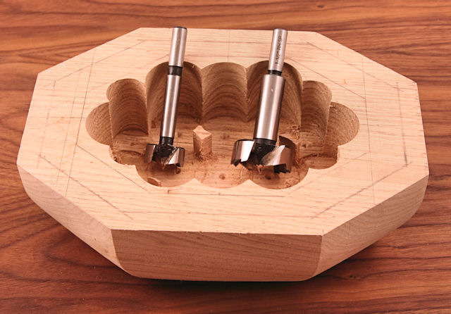 bowl side and then drilled a series of holes using Forstner bits to begin