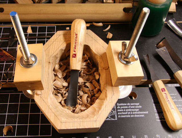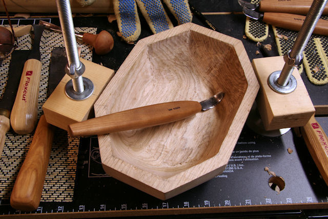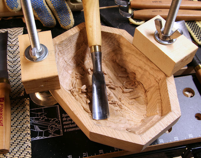 more wood inside at the bottom to deepen the bowl. Dog leg gouges (see